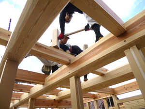 - 実体験から長いホゾの場合と短いホゾの場合では揺れの違いがあります。私たち大工は建て方の時骨組みの上を歩きまわります。長いホゾの骨組みと、短いホゾの骨組みでは明らかにその揺れは違います。木と木が接する面積が多ければその分色んな方向から加わる力にも対応が出来るということです。
